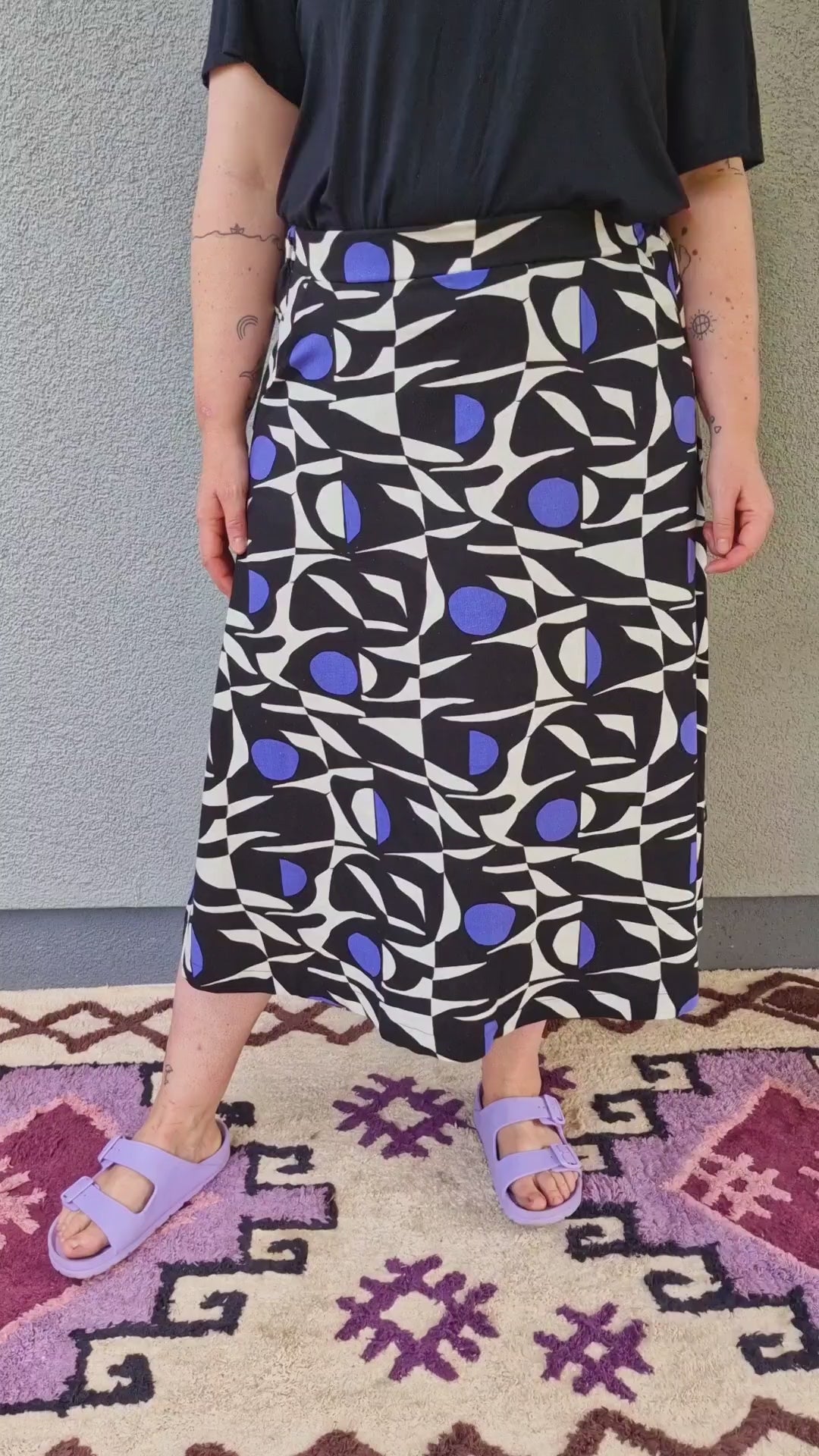 Viskoserock 'Sprenkel schwarz flieder' Midilänge